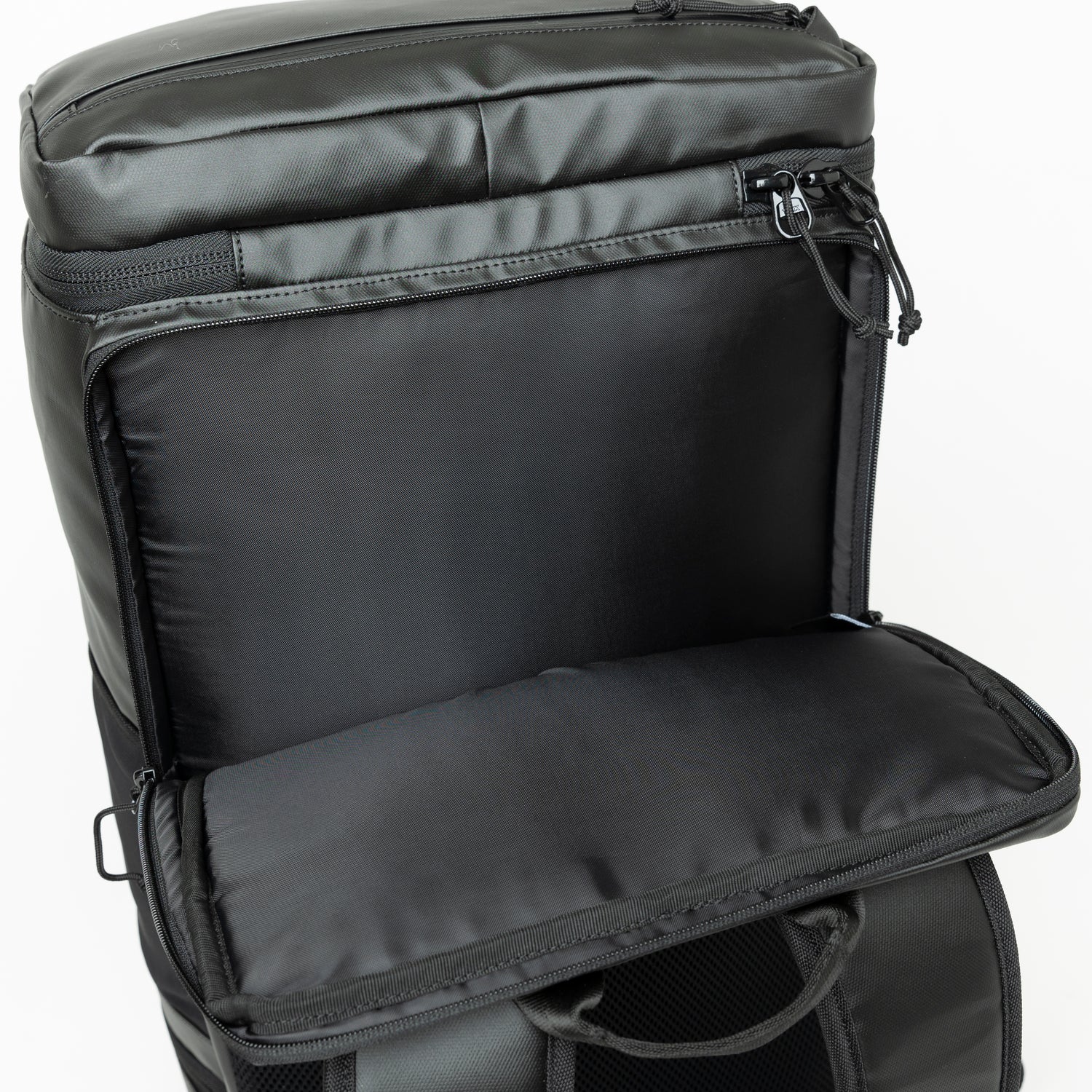 Buy the New Era Black & Graphite 46l Box Logo Box Pack at Toby's Sports!